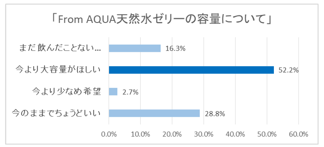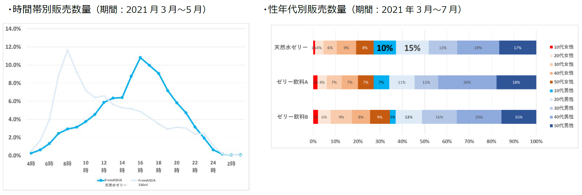 また、「From AQUA天然水ゼリー」の購入者が、ミネラルウォーターである「From AQUA」を購入する傾向も増加しており、「From AQUA」ブランド全体での新たなターゲット開拓に大いに貢献する結果となりました。