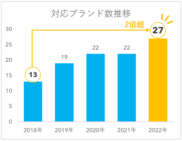 【初回導入から4年で導入ブランド数を2倍に拡張】