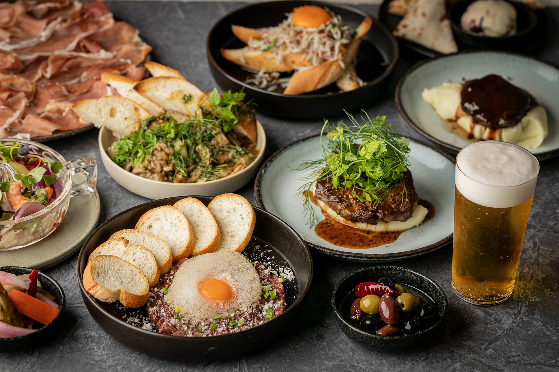 名物の焼き立て薪焼きピッツァと厳選されたクラフトビールのマリアージュは至福の一言。その他、生麺パスタは1180円(税込1298円)〜。人気の「極太生麺パスタの濃厚ボロネーゼ」は癖になる。気軽につまめるタパスは350円(税込385円)〜と、いつもの価格でこのパフォーマンスを楽しめるのが嬉しい。
