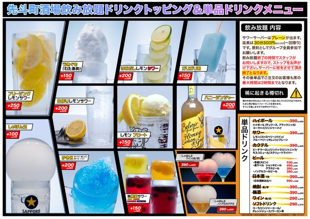 2) レモンサワー飲み放題に花を添える!独自固有の豊富なトッピングラインナップ!