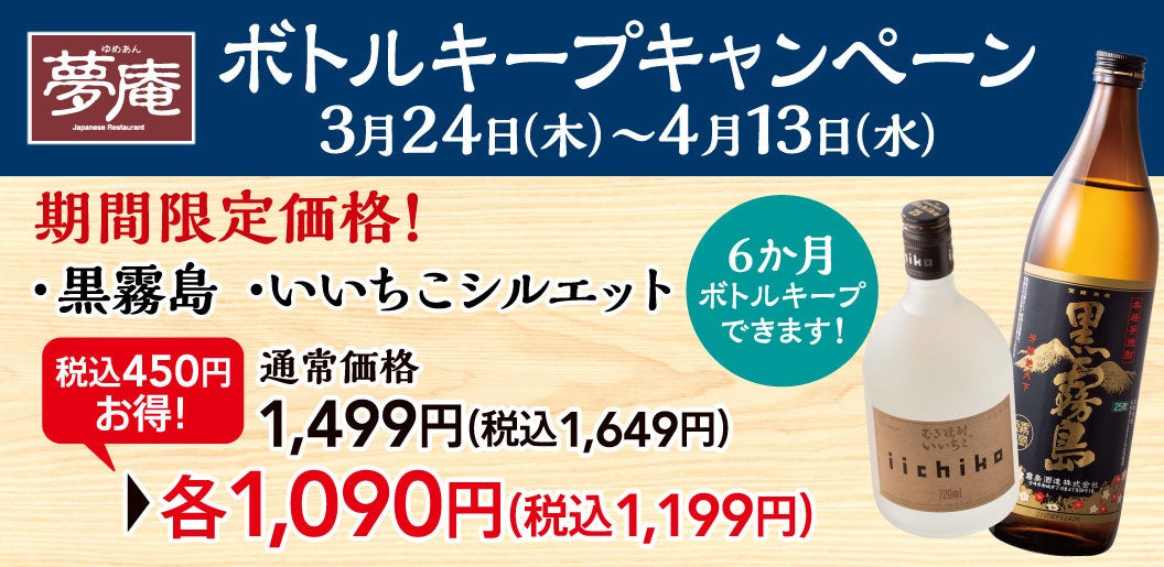 - 夢庵 焼酎ボトルキープキャンペーン 概要