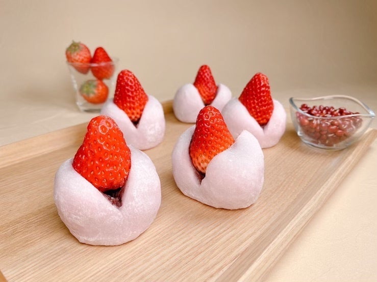 紹介文:北海道十勝産の良い香りが特徴の「えりも小豆」をじっくりと炊き上げた自家製餡を使用。やわらかいお餅で包み込み、旬の苺を飾り付けた、明治4年創業の「又一庵」がつくる150年の技術を生かした、季節限定苺大福です。
