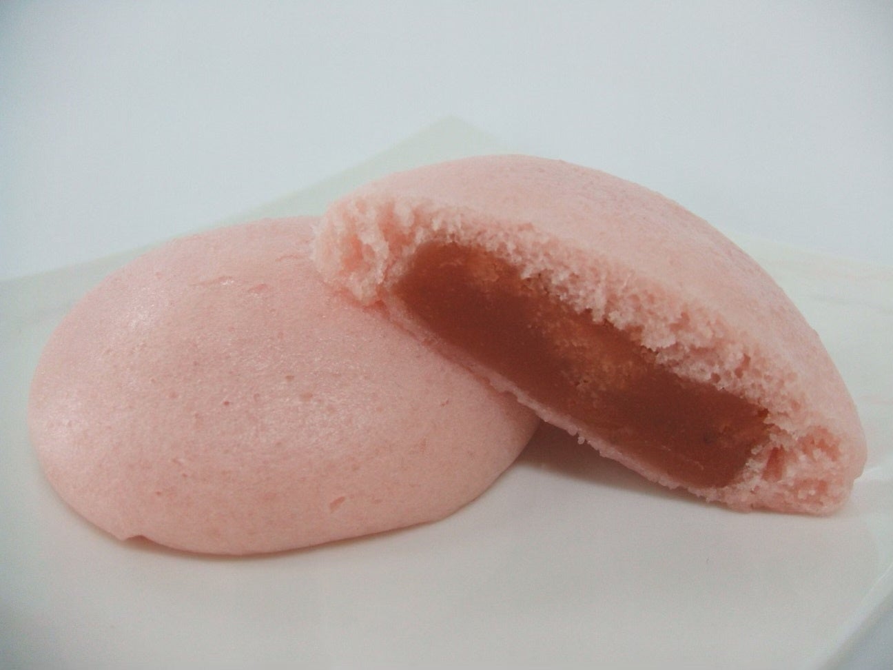 紹介文:苺ピューレとストロベリーシードを白あんに練りこみ、練乳を混ぜ込んだ生地でふっくらを蒸しあげたこの時期だけの限定まんじゅうです。