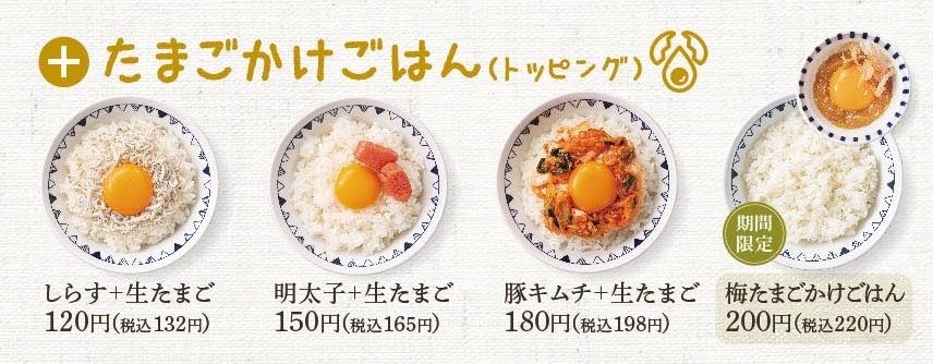 その他、定食の楽しみ方が広がる「南高梅」と、たまごかけごはん(トッピング)に「梅たまごかけごはん」が期間限定で登場します。