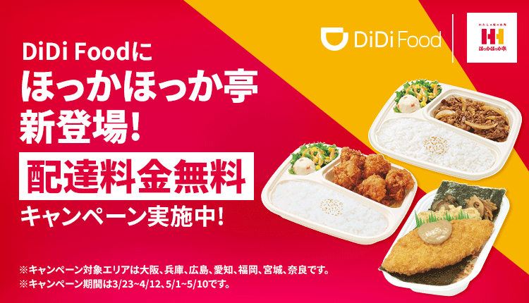 DiDi フードジャパン株式会社の運営するデリバリーサービス「DiDi Food」に、株式会社ほっかほっか亭総本部(代表取締役社長:岩嵜智彦、本社:大阪市北区鶴野町3番10号)が展開する「ほっかほっか亭」が2022年3月23日(水)より、加盟店に加わります。