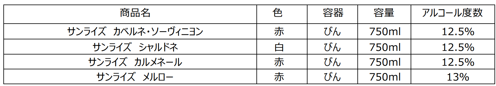 今回のリニューアルでは、「300日の太陽の恵み」や「濃いリッチな果実味」といった既存の2イメージに加え、「太陽」をより分かりやすく表現したパッケージに変更することで、「サンライズ」シリーズの「100%太陽エネルギーを使用したワイン造り」を訴求します。