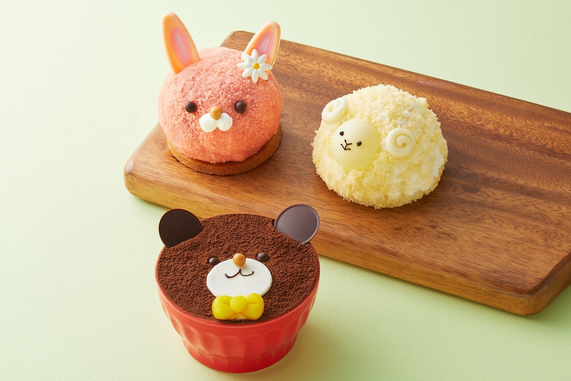 ひつじのチーズケーキ/くまのティラミス/うさぎのムース 各¥648(¥600)