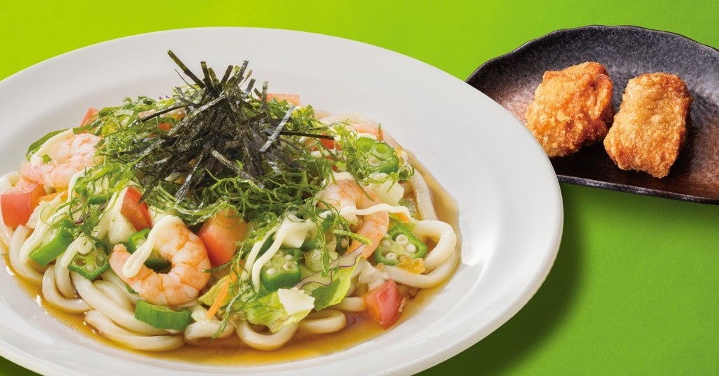 海老と山芋オクラのねばとろサラダうどん+[から好し]ももから揚げ2個