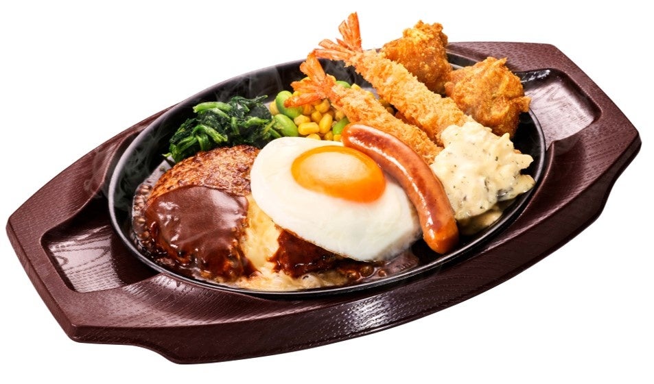 お値段そのままで、チーズINハンバーグ人気盛りに『海老フライ2本』が追加!さらに美味しい“大”人気盛りに。