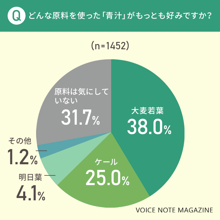 38.0%の方が「大麦若葉」を使った青汁がお好みのようです。