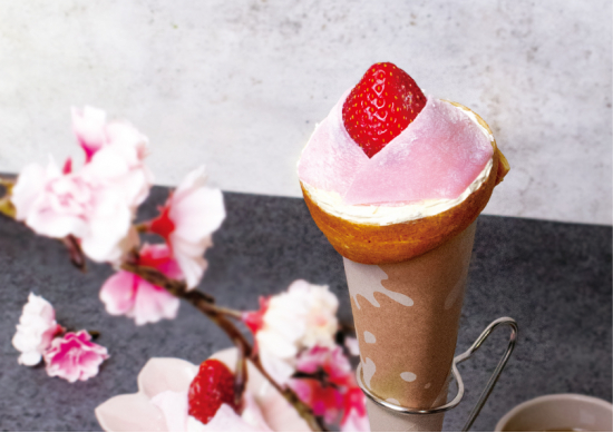 苺にピンクの求肥をまとわせ、オリジナルホイップクリームとチーズクリームを合わせた