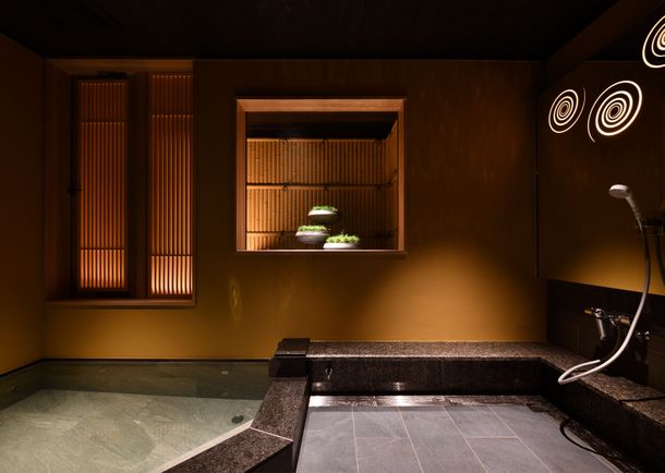 2室ある天然香住温泉を源泉とした貸切風呂も充実しており、「海 KAI」には遠赤外線低温サウナ、「山景 SANKEI」にはミストサウナが設置され、温泉と共にサウナを楽しみつつリラックスできます。また、隣接する姉妹宿の「さだ助」の大浴場(露天風呂付き)も利用可能という嬉しいサービスもあります。
