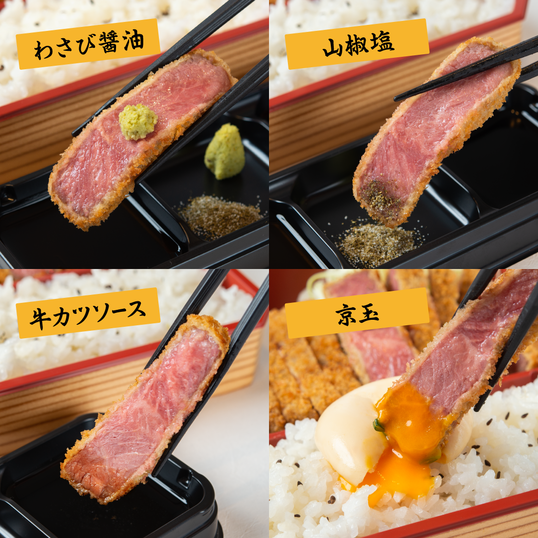 また、お店で食べる牛カツ膳をそのまま再現することにこだわり、お弁当でも京都勝牛らしくバリエーション豊かな薬味とつけだれで、最後まで飽きずにお召し上がりいただけます。