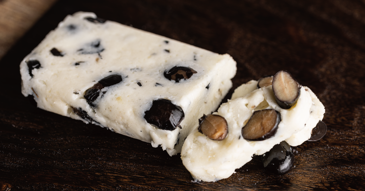 (上品な甘さで仕上げた丹波黒のしぼり黒豆と、酒粕の風味がふわっと香る「和のおつまみバター」)
