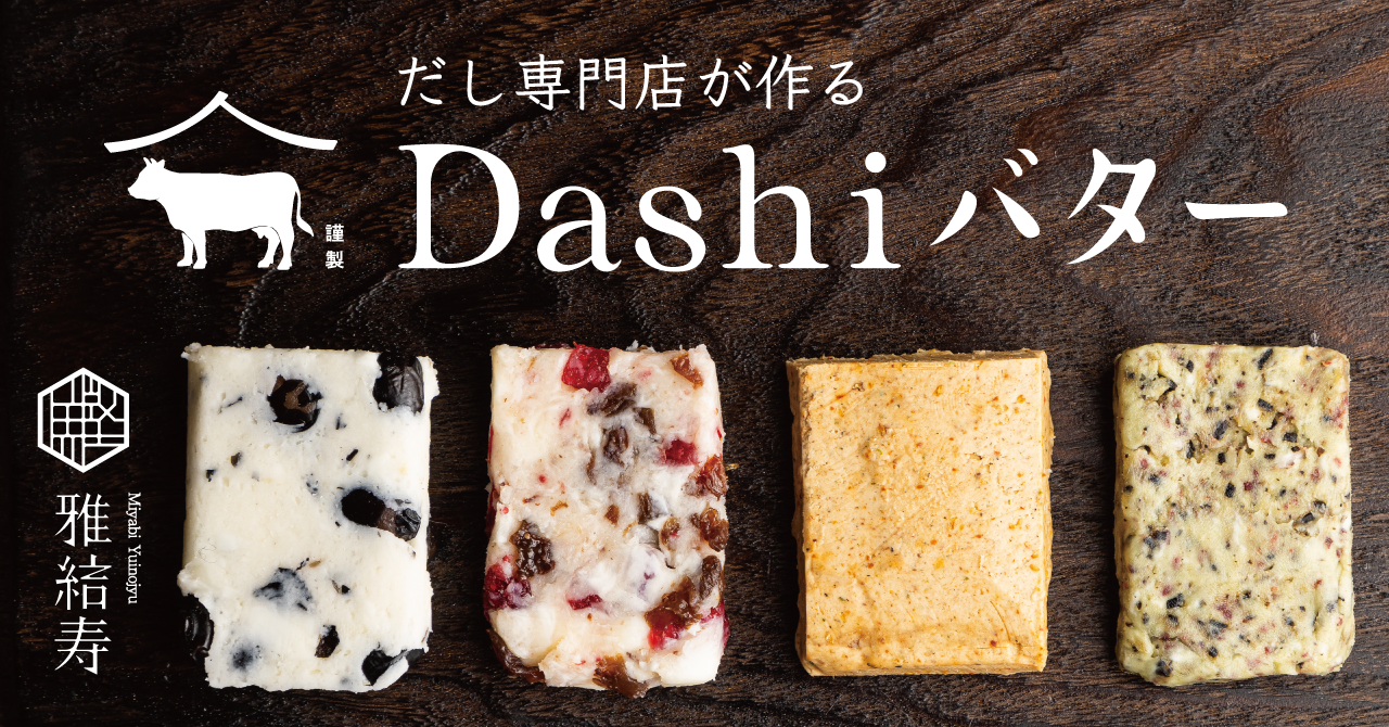 だし専門店『雅結寿(みやびゆいのじゅ)』(運営:ボニートジャパン株式会社、本社:東京都世田谷区)より和素材を使用した4種類のDashiバターが登場。「低温長時間発酵」の第一人者 志賀勝栄シェフの食パン、バケットとDashiバターのセット。