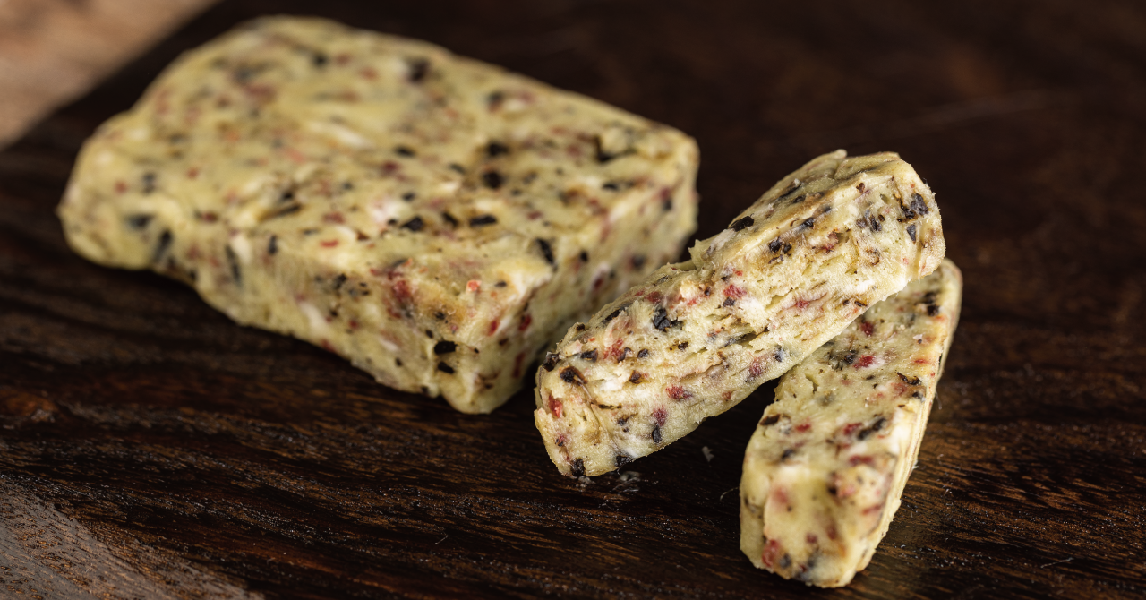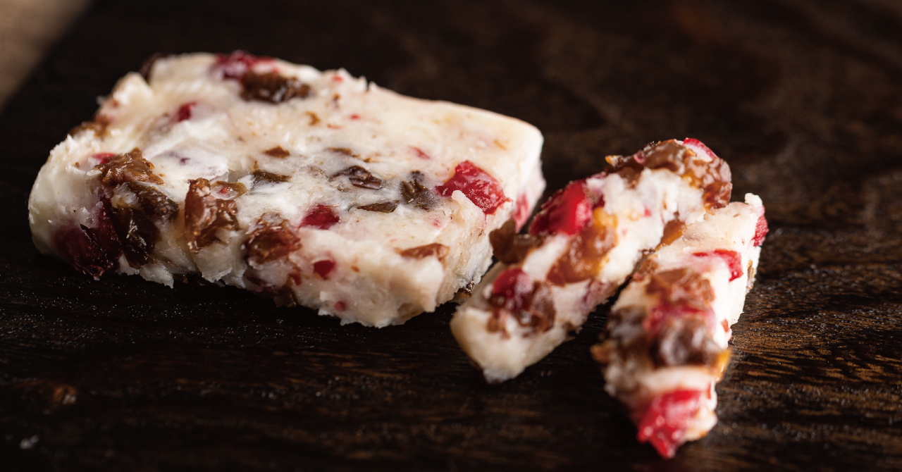 (自家製ラムレーズンとクランベリー。豊潤なラム酒の香りとフルーツ食感が楽しめる「おつまみバター」)
