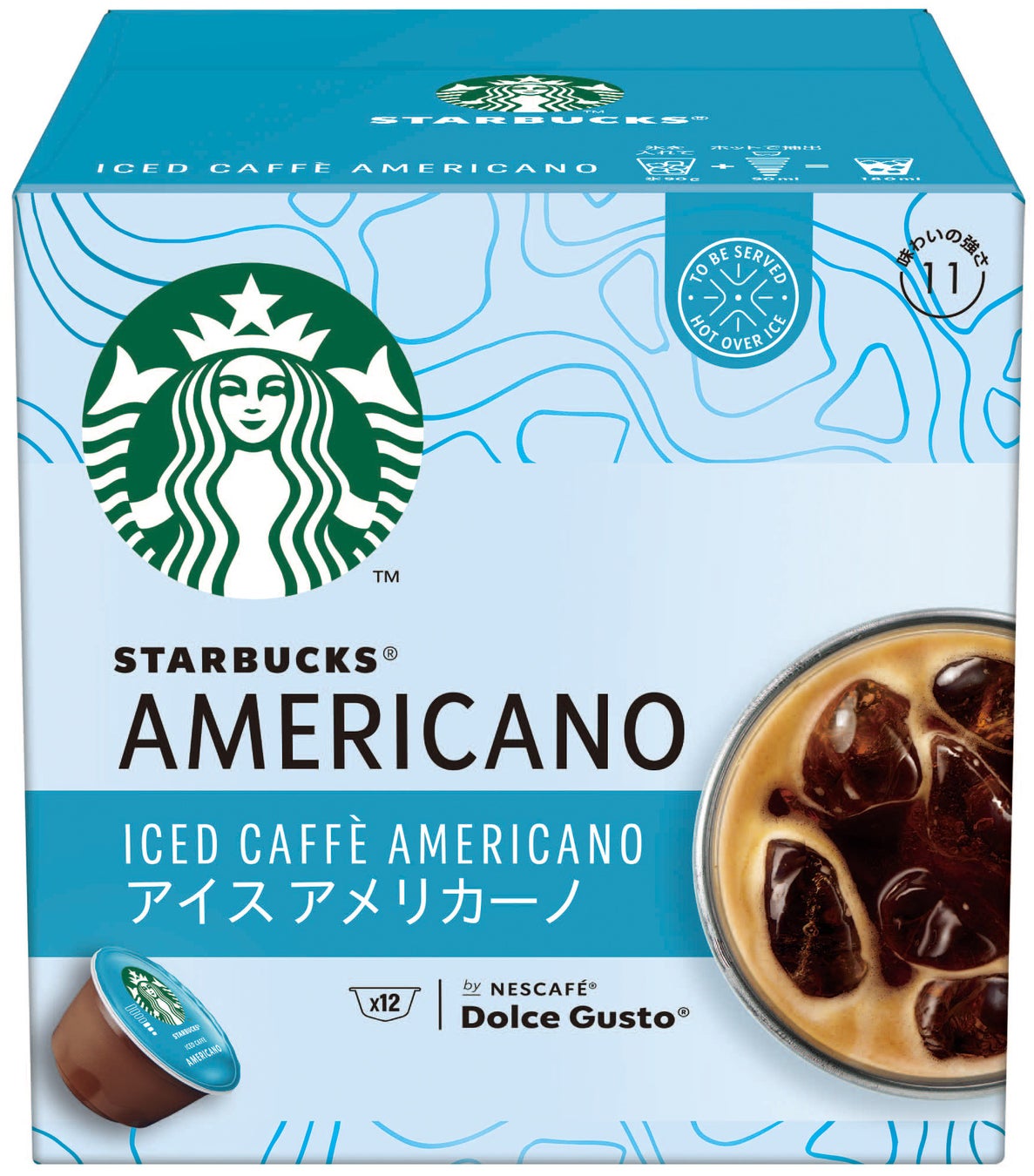 スターバックス® アイス アメリカーノ ネスカフェ ドルチェ グスト 専用カプセル 12P (12杯分)、1,077円、4月1日(金)、全国の主要スーパーマーケット等(※1)、ネスレ通販オンラインショップ等