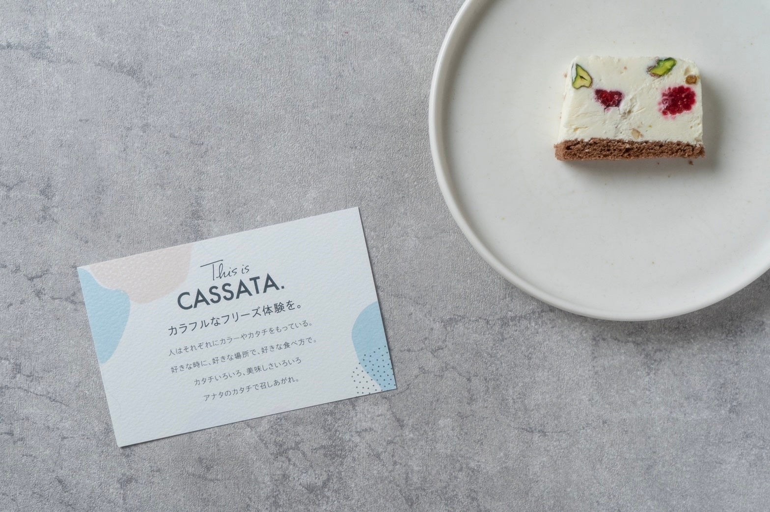 「This is CASSATA.」は、シフォンケーキ専門店「This is CHIFFONCAKE.」の商品ラインナップから生まれたカッサータ専門のスイーツブランドです。「おいしいフリーズ体験を。」の精神はそのままに、新ブランドとして生まれ変わったカッサータをお届けします。