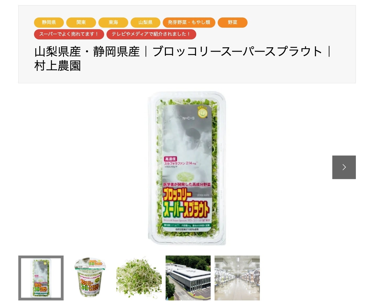 今回は発売してから20年以上のロングセラーとなっている村上農園の「ブロッコリースーパースプラウト」。健康に寄与する有用成分「スルフォラファン 」を成熟ブロッコリーの20倍以上と高濃度に含む高成分野菜です。徹底した衛生管理と品質管理で栽培され、テレビをはじめとしたメディアで取り上げられることも多い野菜です。