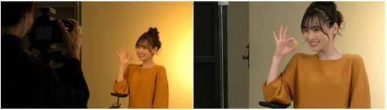 本番前の打ち合わせも本番中も全力で臨んでくれた福原遥さん。つねに笑顔で可愛らしさ全開の福原さんにカメラマンをはじめ、現場一同癒されました。撮影の休憩中にも「ついつい食べてしまいました!」と照れた様子で告白し、場を和ませてくれました。
