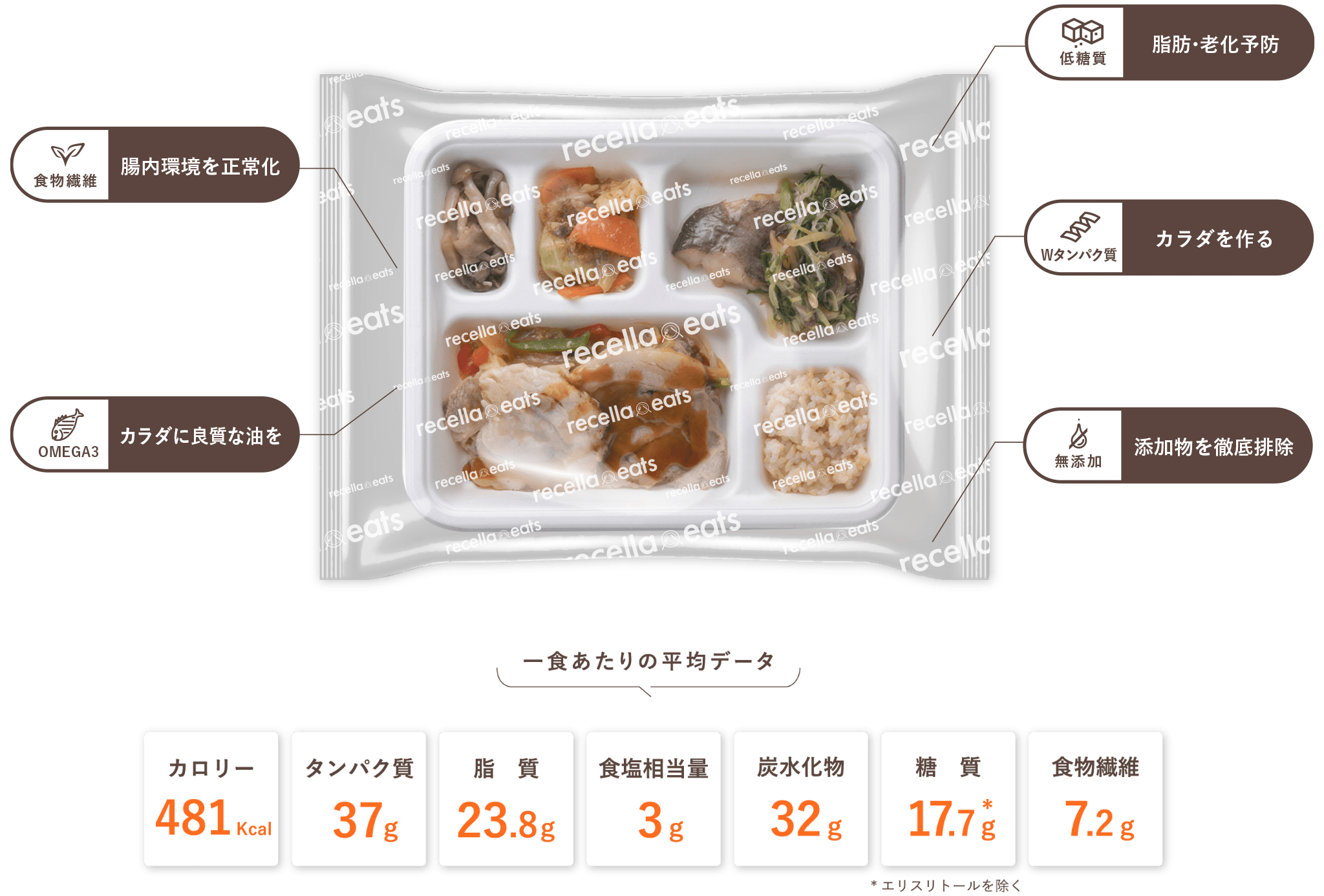 1.低糖質(平均17.7g/エリスリトール除く)・・糖質は脂肪と老化の原因に