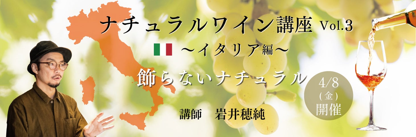 講座名:「ナチュラルワイン講座Vol.3~イタリア編~ 講師 岩井 穂純」