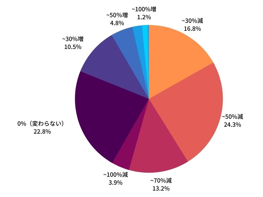 - リモートワークをするようになり、ランチ休憩時間が減ったと回答した人は、約6割となりました。さらに約2割の人は、ランチ休憩時間が50%以下に減少していることが明らかになりました。【表1】休憩時間が短くなった理由としては、「ついつい頑張ってしまう」「仕事に集中できない分、食事の時間を短くしている」という回答がありました。