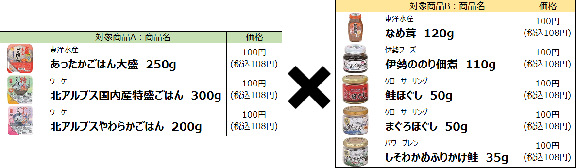 また、パックごはんと「ごはんのお供」を同時購入すると値引となるキャンペーンを4月6日(水)から12日(火)の7日間実施します。