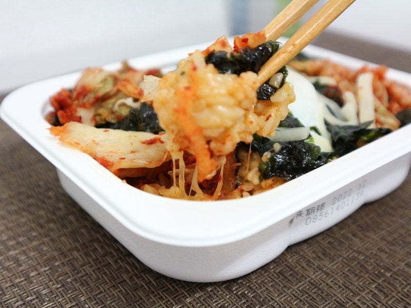 韓国のり 8切8枚3袋/北アルプス国内産特盛ごはん 300g/VLとろり半熟トッピングたまご 4個/VLモッツァレラミックスチーズ 65g/VLルーさんの甘辛キムチ 200g(各・本体価格100円/税込108円)