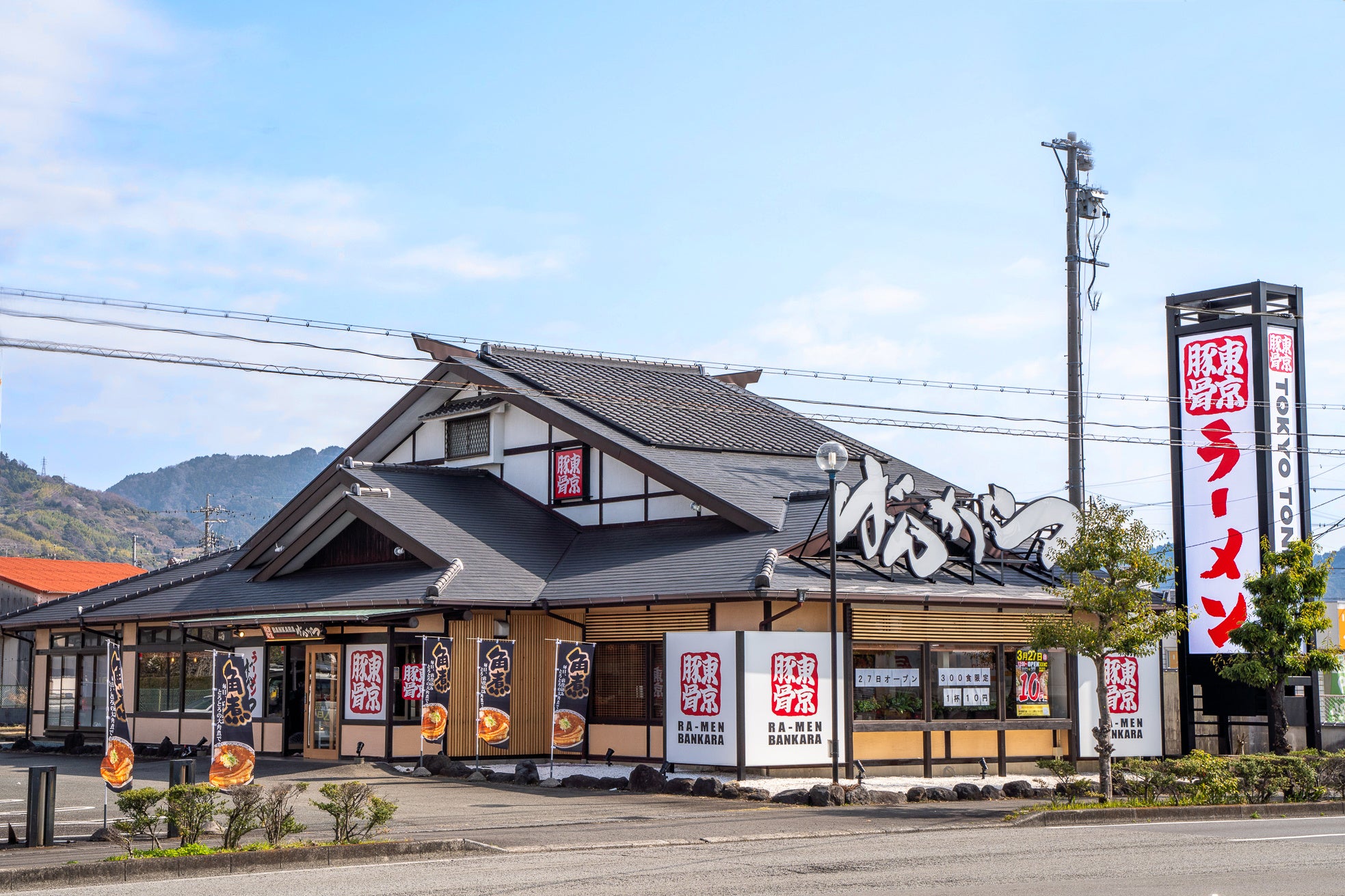 この度、株式会社花研(本社:東京都豊島区、代表取締役:草野直樹)が運営するラーメンチェーン”ばんから”は、「東京豚骨拉麺ばんから」焼津店(静岡県)を3月27日(日)にオープンいたします。また、オープン日限定の恒例特別企画、10円でラーメンを食べることができる「10円ラーメン」を300食限定で「ばんからラーメン(通常850円)」「旭川味噌ラーメン(通常900円)」の2つのメニューを対象に提供いたします。焼津店は全76席をご用意したロードサイドに位置する大型店舗となり、静岡県内5店舗目となります。