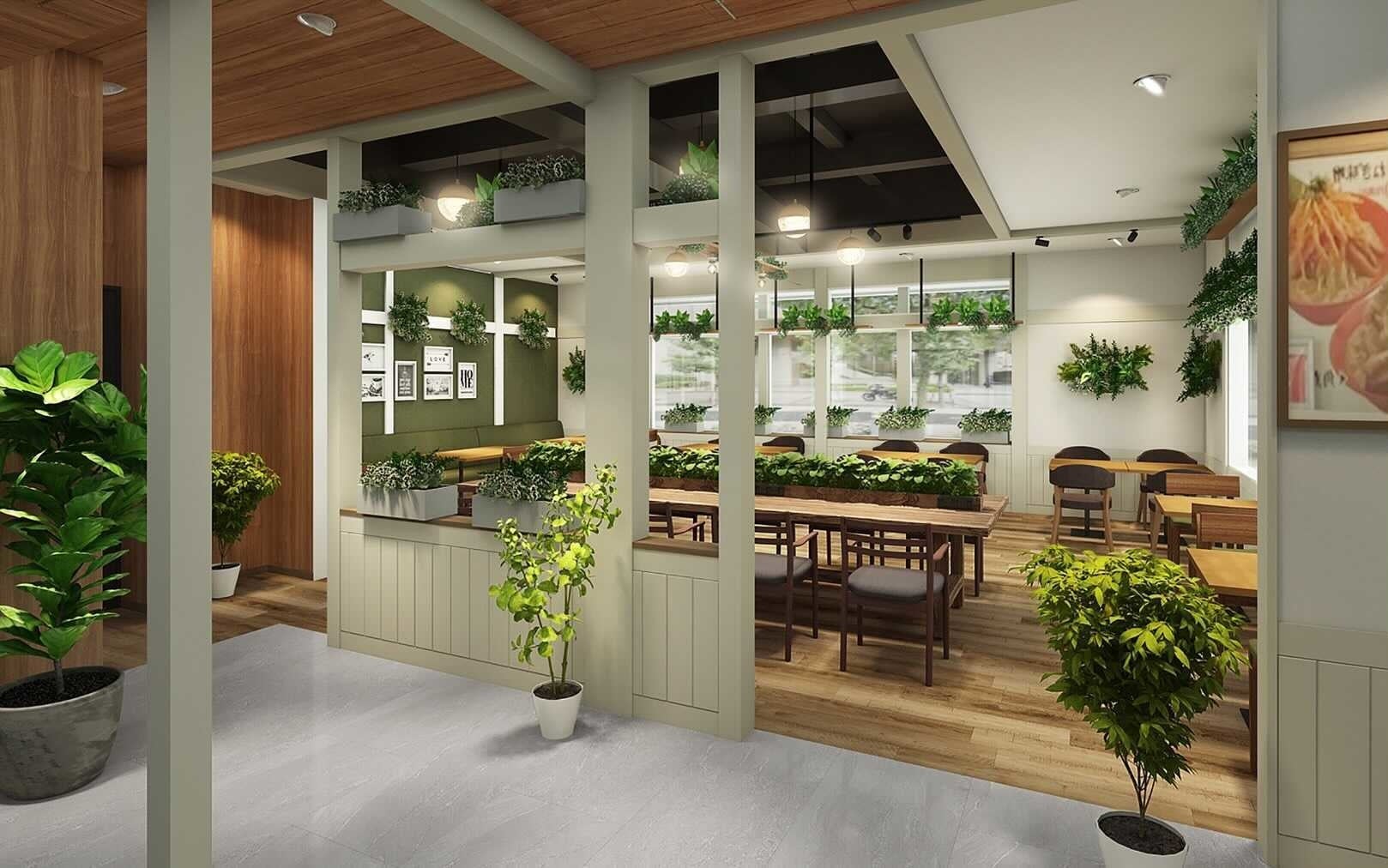 店内はグリーンで統一した色味と温かみが感じられる木材をふんだんに使用したデザインを取り入れ、スタイリッシュで洗練された店舗となりました。通常のグランドメニューである豚骨醤油・旭川味噌の2種のラーメンを主軸に「14種」を超えるトッピングやお子様向けメニューまで、幅広いメニューを展開しており、デリバリーやテイクアウトも可能です。おひとりさまからお子様連れのご家族まで、さまざまな利用シーンに合わせた席をご用意しています。