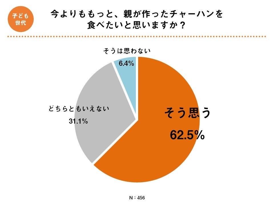 また、6割以上の子どもたちが「今よりももっと、親が作ったチャーハンを食べたい」と思っていることも明らかになりました。