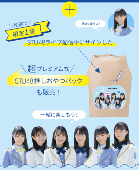 配信概要 :STU48のメンバーがLIVE配信中に、視聴者のみなさんとチャットで会話したり、ゲームやトークをした りしながらUHA味覚糖のお菓子を詰めていき、配信中に「推しおやつパック」を完成させます。