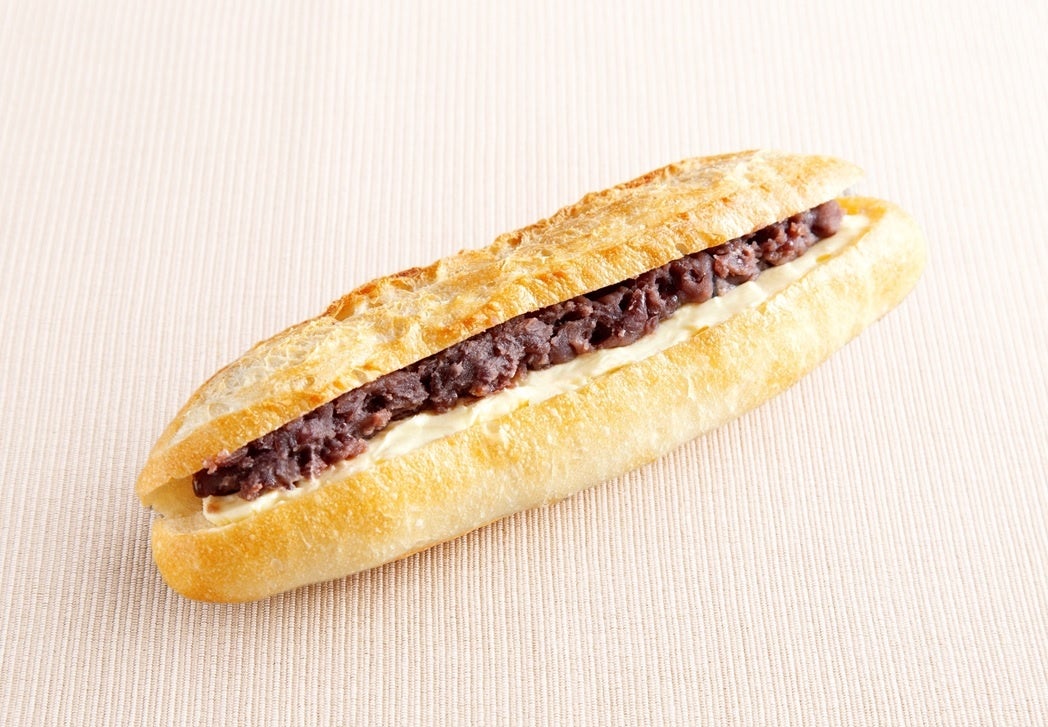 パリパリのフランスパンにバターをたっぷり塗り、風味の良い宇治抹茶あんをたっぷりサンド。あんこのアクセントにあずきを入れ、バターとよく合うマイルドなフランスパンに仕上げました。