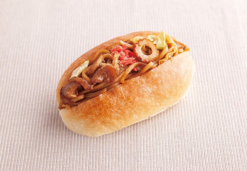 コシのある平打ち麺とラードを絞った後の肉かすが特徴の富士宮焼きそばをパンから溢れんばかりに盛り付けました。