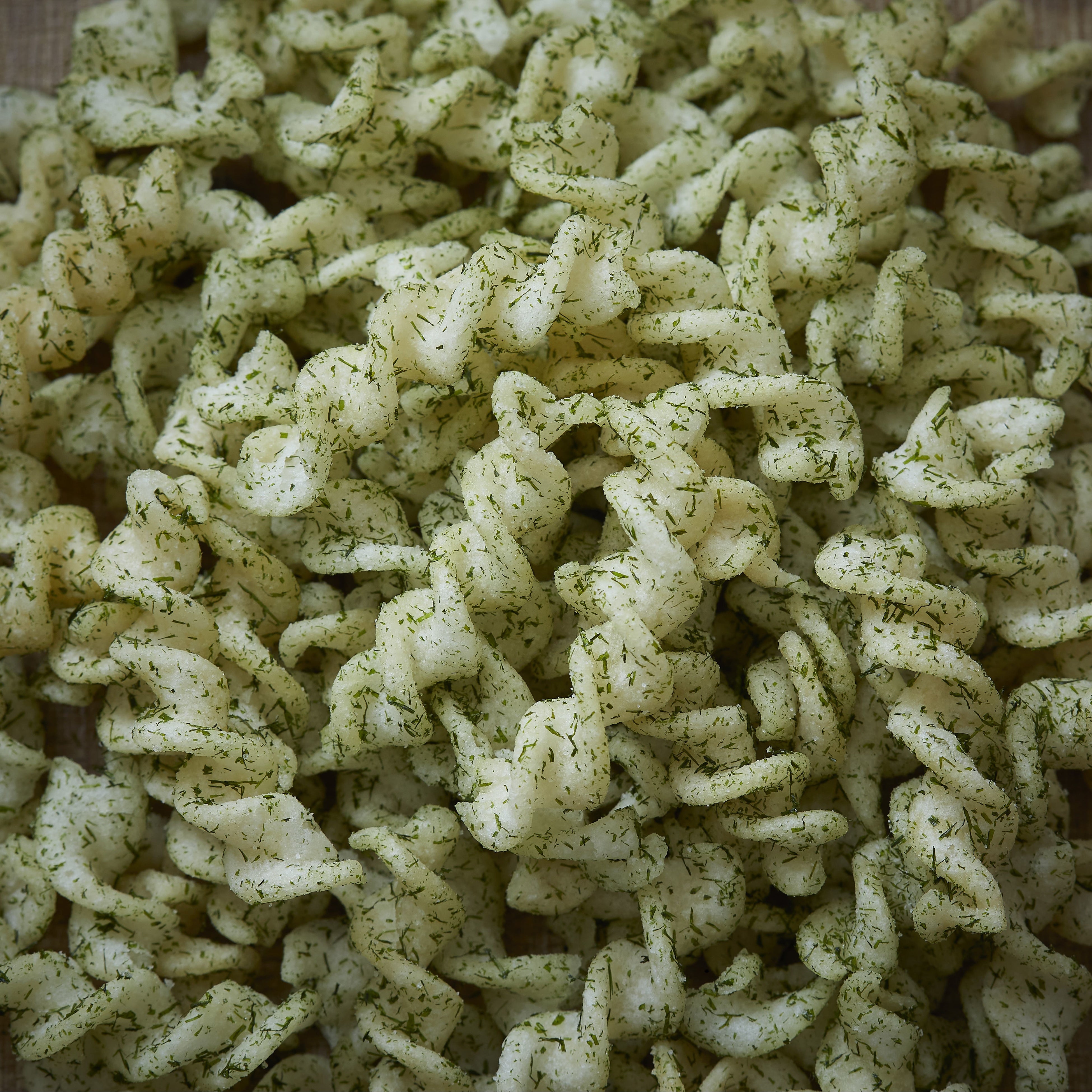 今回新たに誕生したポリフリーの味付けは「のり塩味」と「えびせん風」の二つ。のり塩味には、陸前高田市で陸上養殖されている「すじ青のり」を使用。青のりの中でも最高品種と言われるすじ青のりの香り高さをお楽しみいただけます。えびせん風には、桜えびのようですがプランクトンの一種である「さくらこあみ」を使用。えびの風味を楽しめ、アレルゲンフリーと言う海の恵みの食材です。食べれば分かるその旨みと香ばしさ。三陸の春の味をご堪能ください。