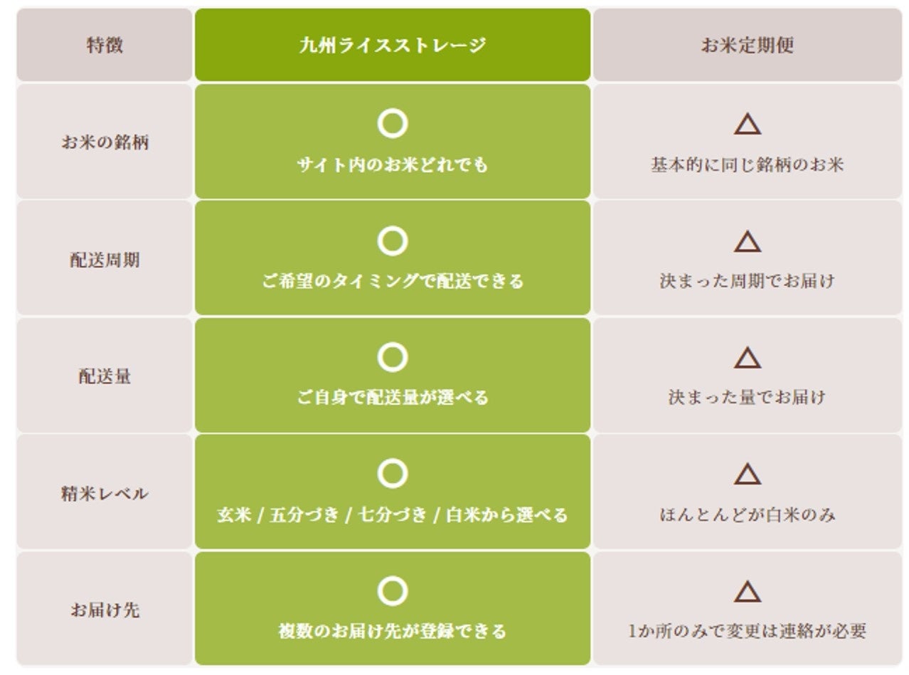 「九州ライスストレージ」は、「お米の定期便は便利だけど、ここがちょっと不便だな」と感じる問題を、解決しているのがポイントです。