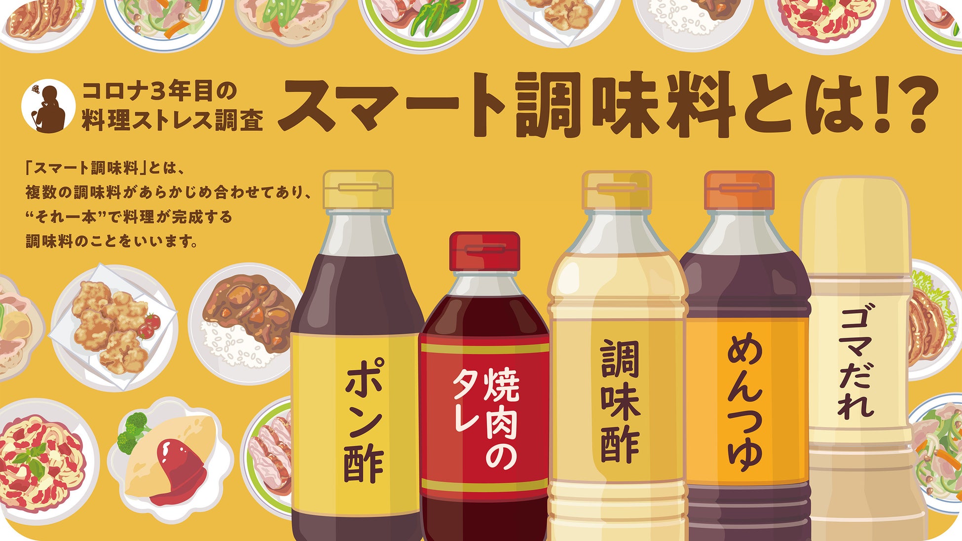 本調査にあたり、複数の調味料があらかじめ合わせてあり、“それ一本”で料理が完成する調味料を『スマート調味料』と定義しています。