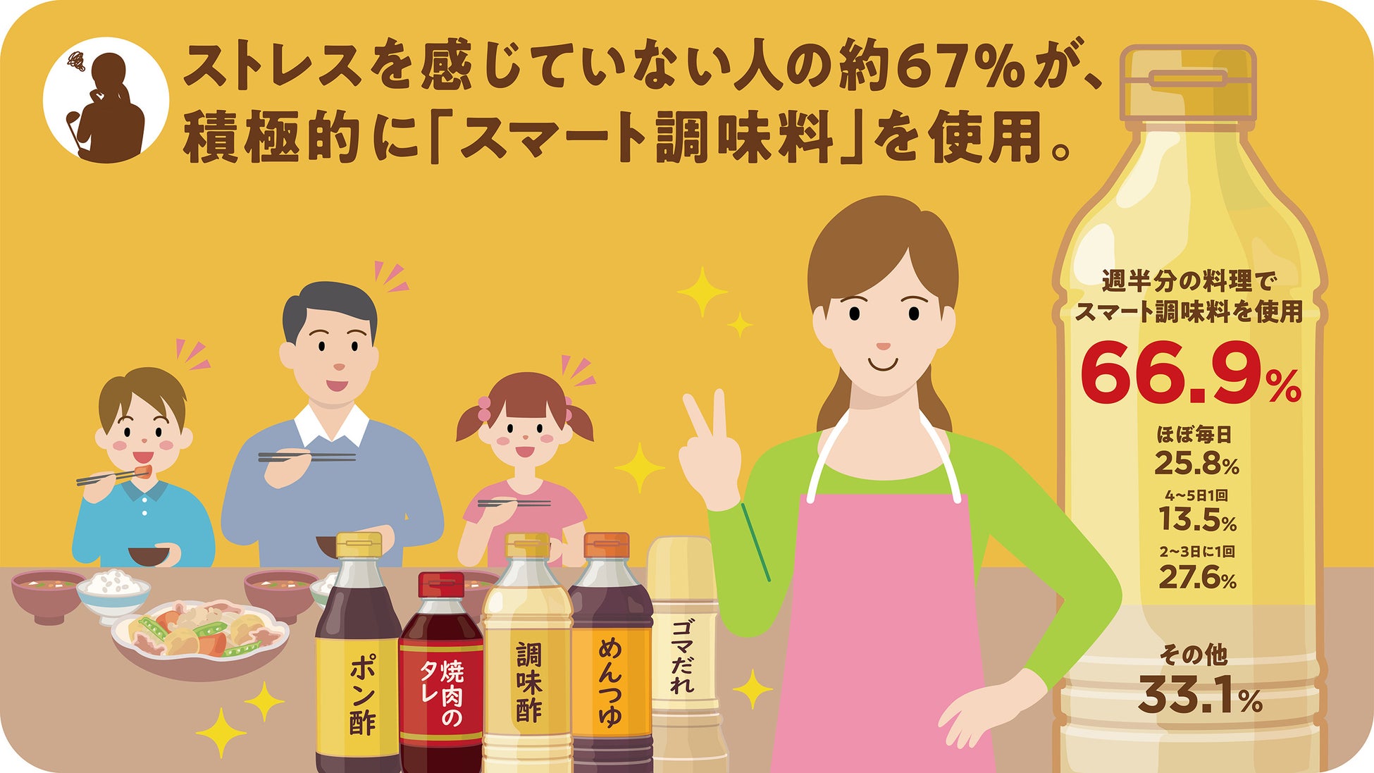 ■ストレスを感じていない人の約67%が週半分の料理に“スマート調味料”を使用