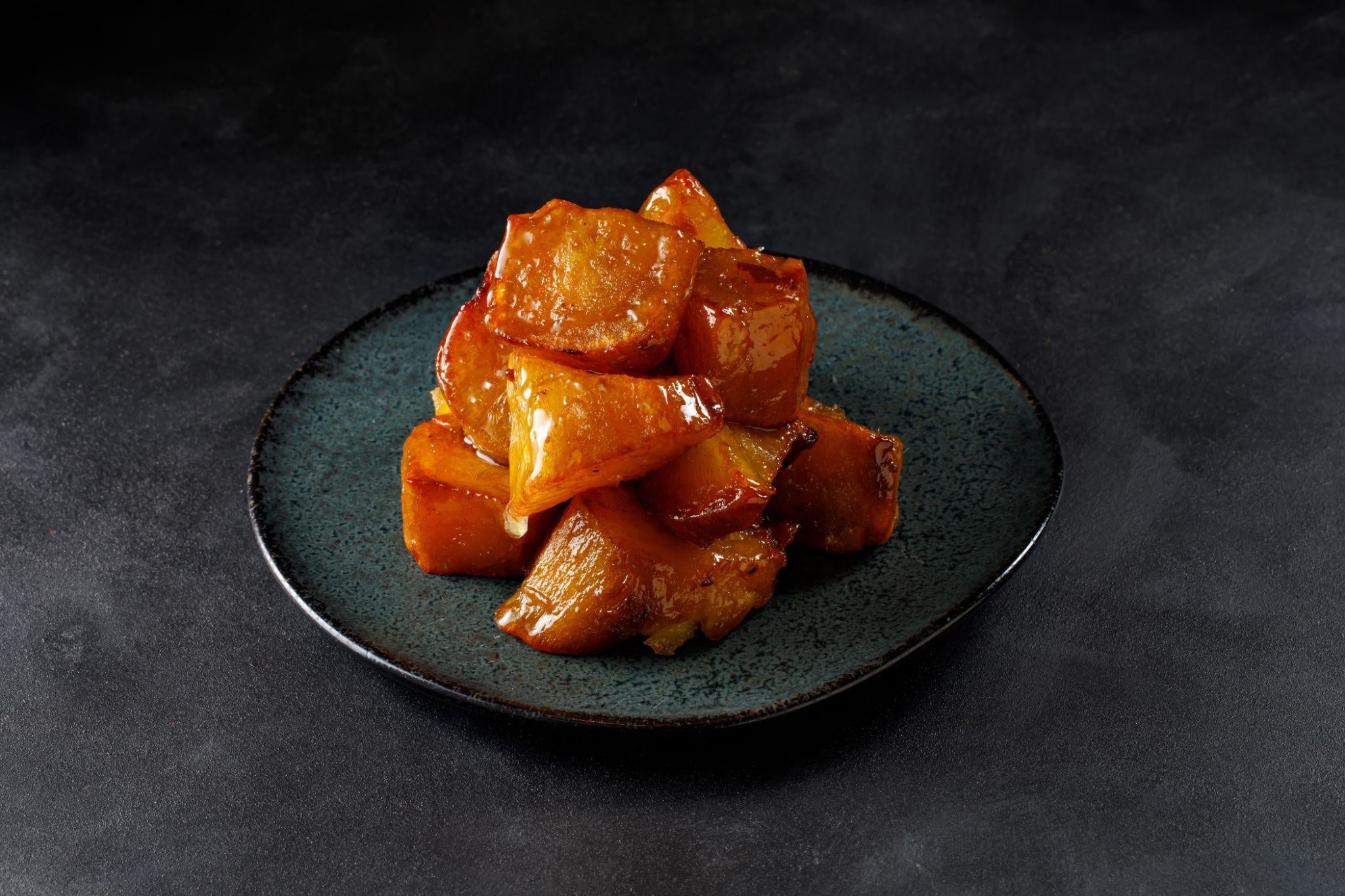 2度揚げ芋を、自家製蜜と絶妙なタイミングや火加減のあわせで調理しております。