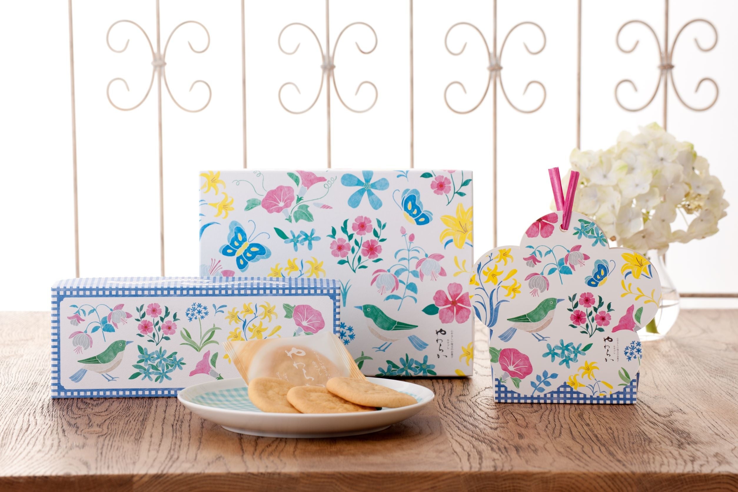 奥村氏:色彩豊かな夏の花畑に人々が元気をもらえる様に、やわらかを口にする方にも笑顔で素敵な気持ちになってもらいたいという想いです。箱の素材や画風には、お菓子からも感じとれる「優しさ」を取り入れ、心地良く親しみやすいデザインに仕上げています。なかなか会うことの出来ないご家族やお友達、贈る相手の方の喜ぶ姿が見たい、そんなお気持ちにお応えできる存在になれたら嬉しいです。