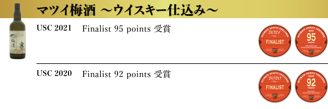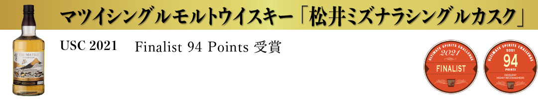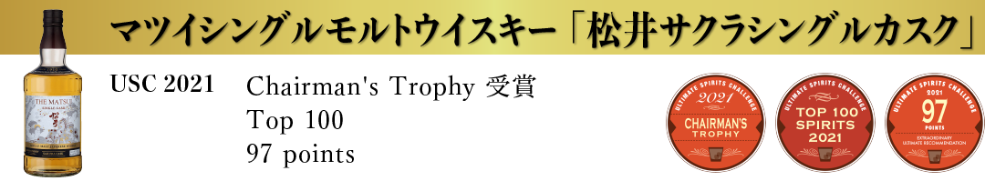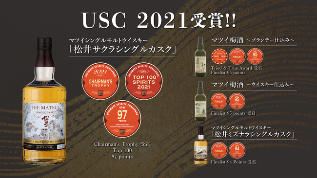 倉吉蒸溜所(鳥取県倉吉市)は、2021年6月30日アメリカのNYで開催されたULTIMATE SPIRITS CHALLENGE(以下 USC)において、シングルモルトウイスキー「松井サクラシングルカスク」がジャパニーズウイスキー部門の最高評価の97点獲得をはじめ、合計で4つの商品が最終選考(ファイナリスト)に選定されました。(弊社プレスリリースhttps://matsuiwhisky.com/blog/20220209/1223/)