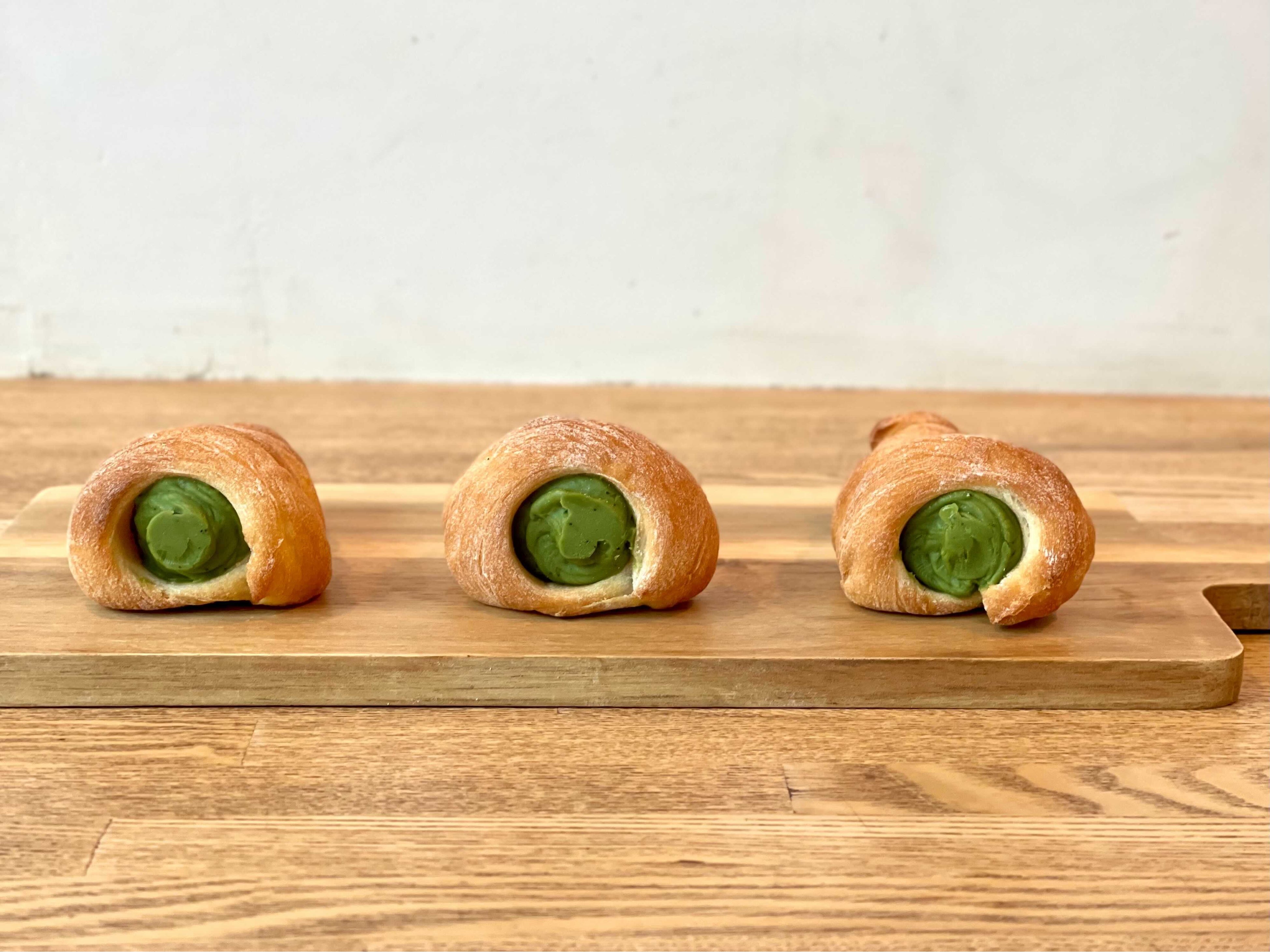 抹茶のクロワッサンにあんこと有塩バターを挟みました。