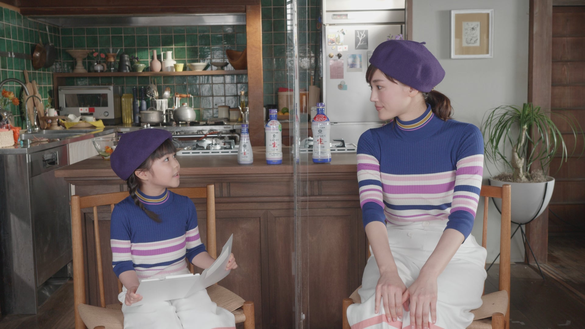 新CMでは、綾瀬さんと柚凪ちゃんが、『いつでも新鮮 しぼりたて生しょうゆ』キャラクターのキッコさん、キッココちゃんに扮し、仲良く料理に挑戦しました。生しょうゆを料理に使うことが“もったいない”と感じている視聴者に向かって、(その考えが)「もったいない」と息ぴったりに声を揃える2人。そして調理中のフライパンに「ズルいほど旨くなる」生しょうゆをひとまわし。
