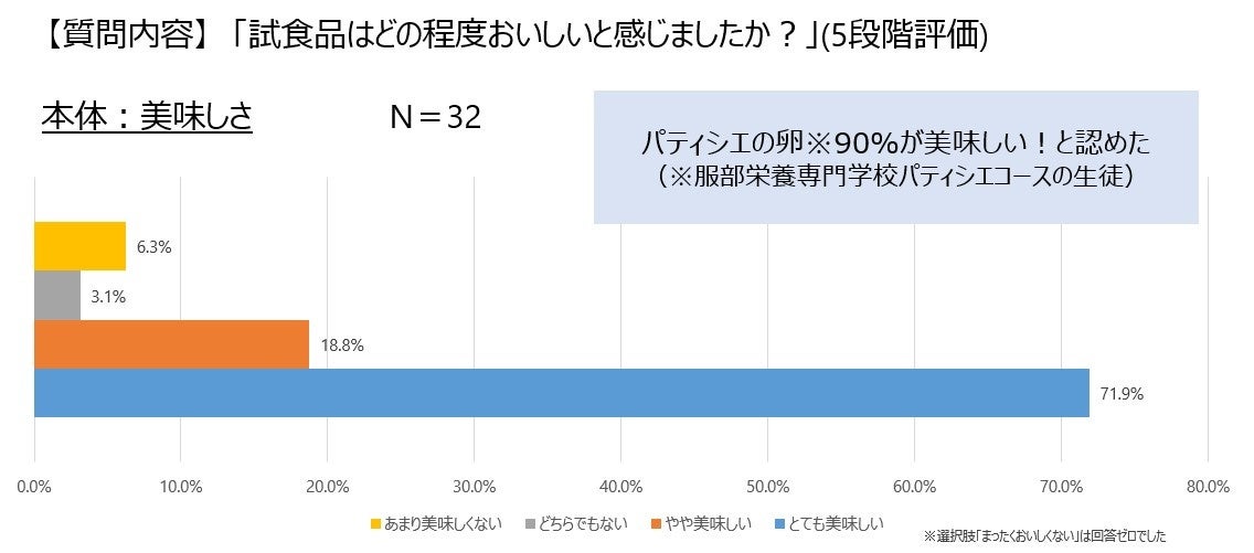 服部栄養専門学校(東京都)パティシエコースで学ぶ生徒へのアンケート調査では「美味しい」との回答が90%以上*でした。