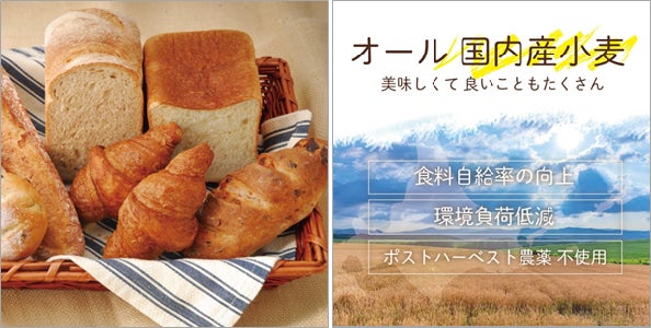 国産小麦を使用することで独特のもちもち感を実現した「国産小麦100%パンセット」も販売開始しました。国産小麦を使用した商品であることの安心感に加え、地産地消のサステナブルな社会の実現に貢献する商品セットとなります。