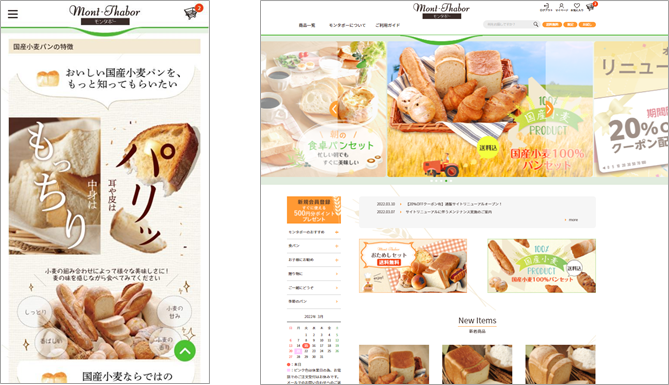 モンタボーオンラインショップでは、”幸せな時間のお届け~家族と豊かな食卓を手作りパンと共に~”をコンセプトに、家族の朝食シーンをイメージし、ワクワクするサイトづくりを目指しました。
