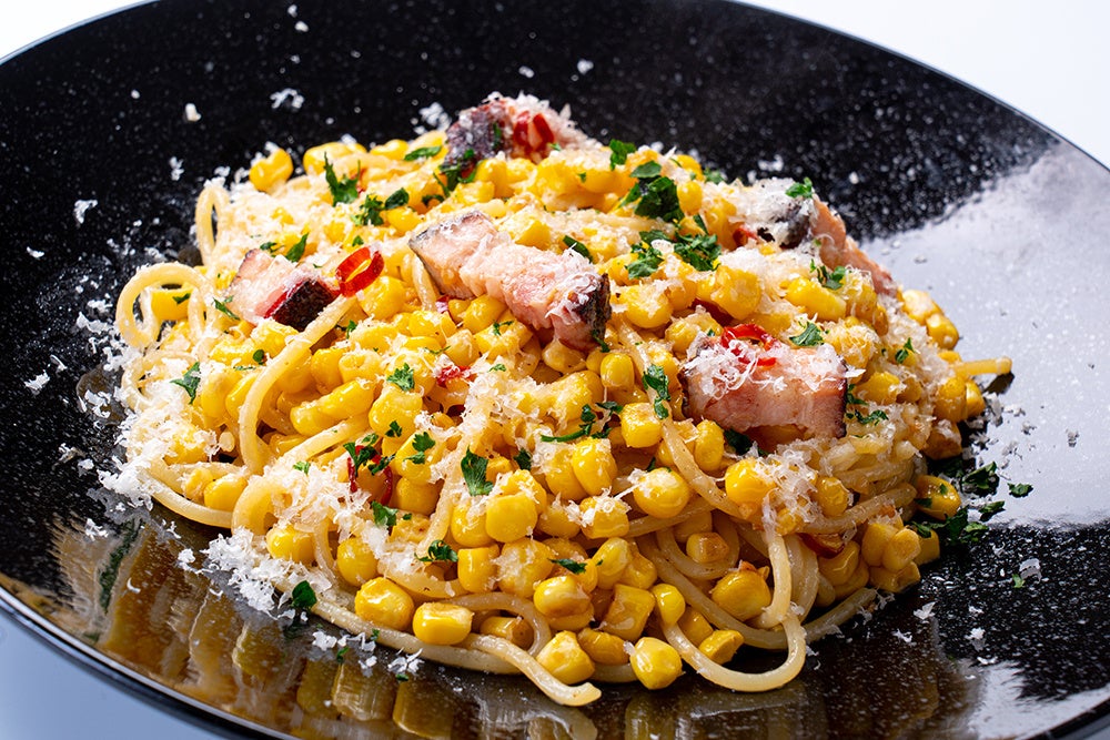 北海道美瑛産のとうもろこしはとにかく甘い!「農家のベーコン」の旨みとイタリアのチーズで風味豊かに仕上げました。