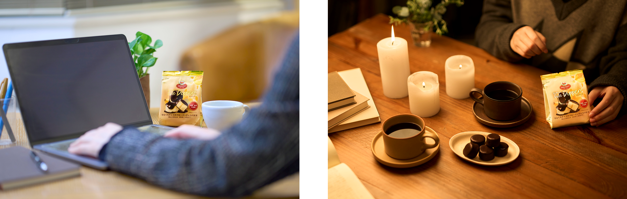 直接手に触れることなく、ワンハンドで1粒ずつ取り出せるパッケージを採用しました。仕事や勉強、読書中でも手を汚さず手軽に食べることができます。