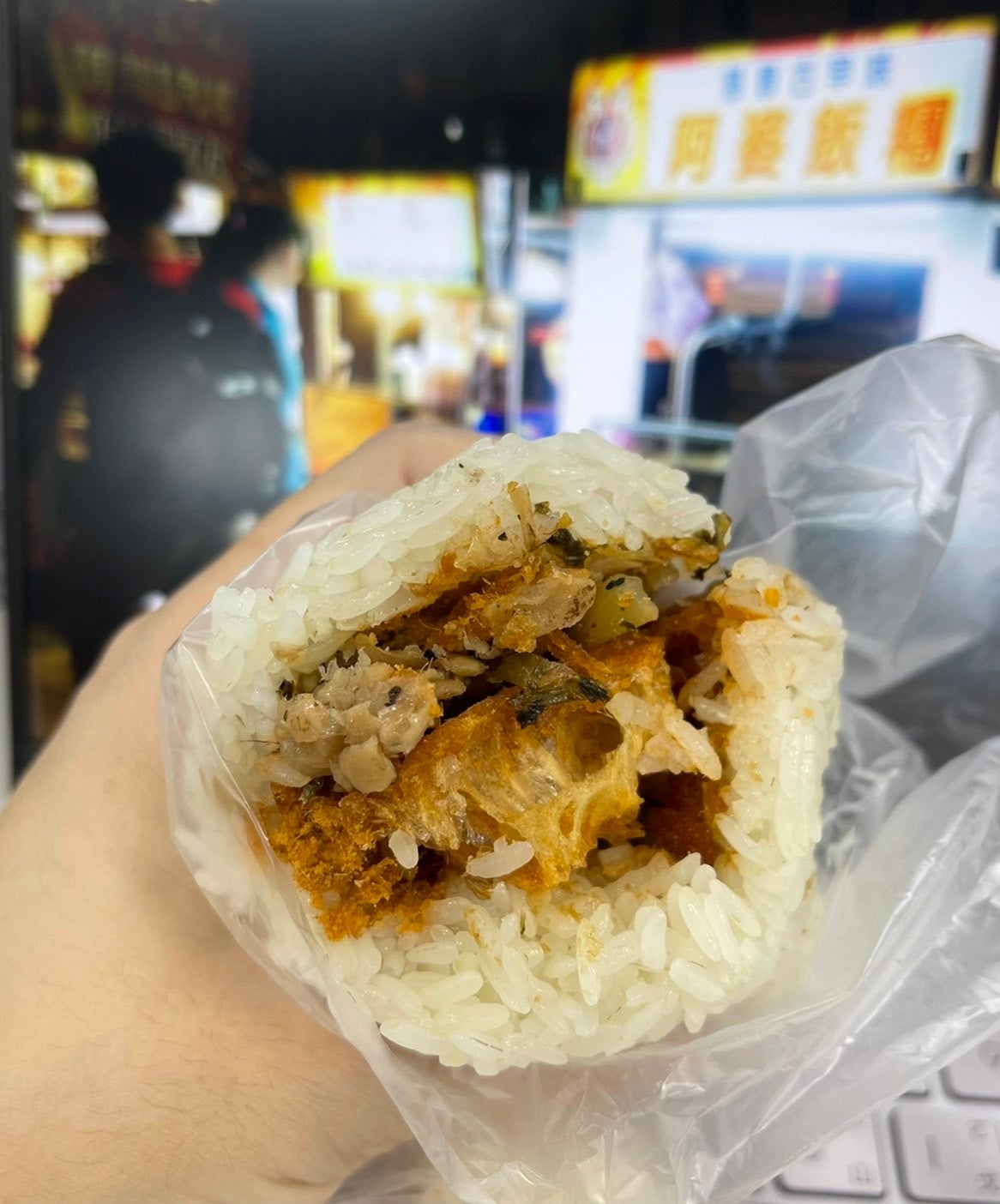 台湾のおにぎりは、日本のおにぎりとは見た目も味も異なります。現地では「飯糰(ファントゥアン)」と呼ばれており、もち米を使用して数種類の具材がたっぷり入っています。具材は様々ですが、卵、たくあん、肉、油條(揚げパン)等が入っていることが多く、「飯糰」は、専門店や移動販売の朝ごはん屋さん等、様々な場所で販売しており、まさに台湾のソウルフードであり、人気のグルメです。
